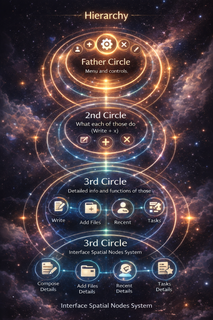 hover them revealing more structures lifting the inner system circles. In older systems those were folders and files, menues and tools. Here all are stars …